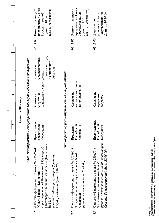 "О КАЛЕНДАРЕ РАССМОТРЕНИЯ ВОПРОСОВ ГОСУДАРСТВЕННОЙ ДУМОЙ С 1 ПО 24 НОЯБРЯ 2006 ГОДА"