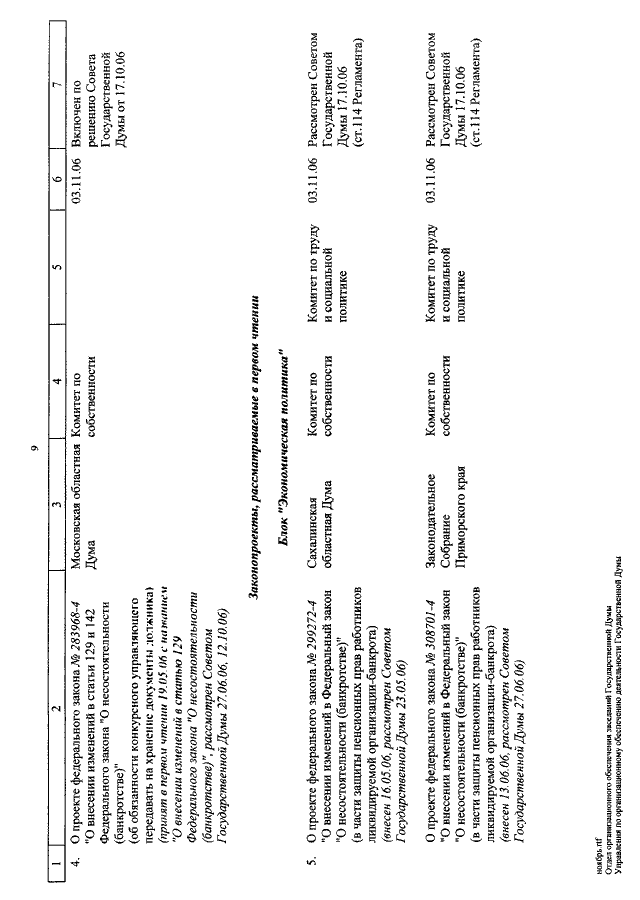 "О КАЛЕНДАРЕ РАССМОТРЕНИЯ ВОПРОСОВ ГОСУДАРСТВЕННОЙ ДУМОЙ С 1 ПО 24 НОЯБРЯ 2006 ГОДА"