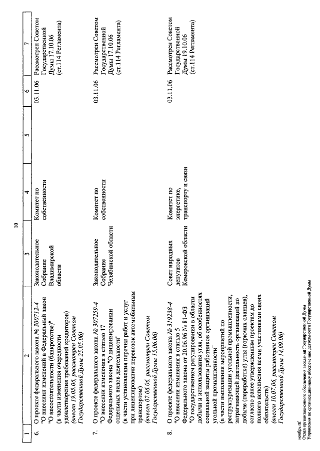 "О КАЛЕНДАРЕ РАССМОТРЕНИЯ ВОПРОСОВ ГОСУДАРСТВЕННОЙ ДУМОЙ С 1 ПО 24 НОЯБРЯ 2006 ГОДА"