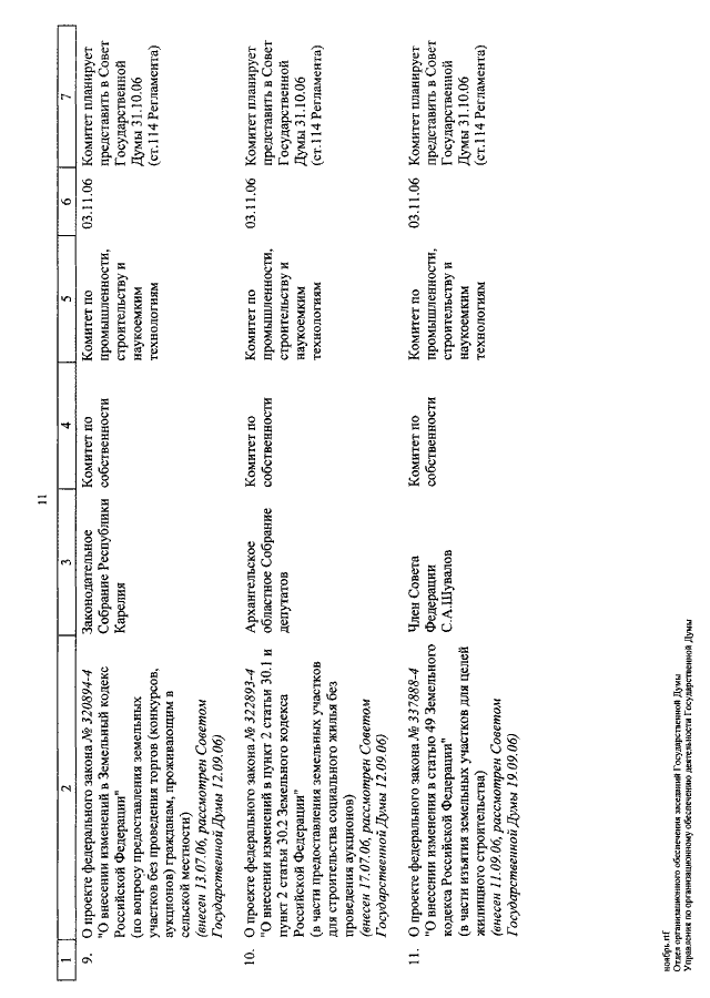 "О КАЛЕНДАРЕ РАССМОТРЕНИЯ ВОПРОСОВ ГОСУДАРСТВЕННОЙ ДУМОЙ С 1 ПО 24 НОЯБРЯ 2006 ГОДА"
