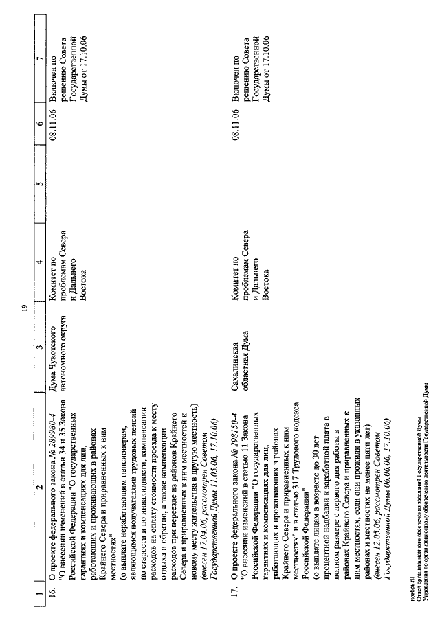 "О КАЛЕНДАРЕ РАССМОТРЕНИЯ ВОПРОСОВ ГОСУДАРСТВЕННОЙ ДУМОЙ С 1 ПО 24 НОЯБРЯ 2006 ГОДА"