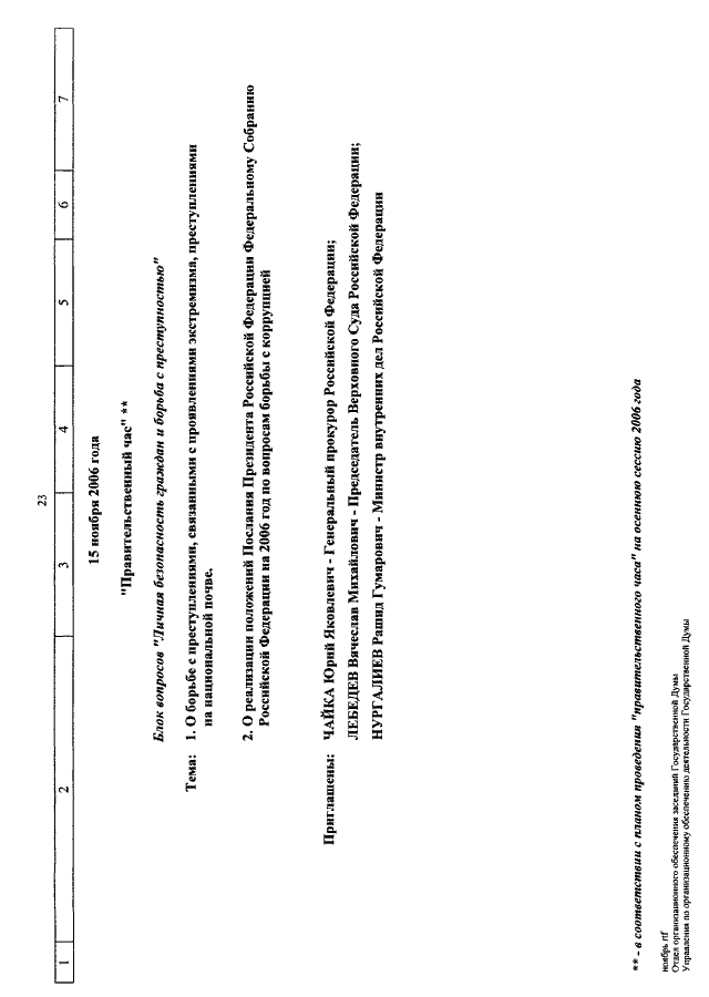 "О КАЛЕНДАРЕ РАССМОТРЕНИЯ ВОПРОСОВ ГОСУДАРСТВЕННОЙ ДУМОЙ С 1 ПО 24 НОЯБРЯ 2006 ГОДА"