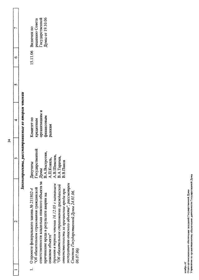 "О КАЛЕНДАРЕ РАССМОТРЕНИЯ ВОПРОСОВ ГОСУДАРСТВЕННОЙ ДУМОЙ С 1 ПО 24 НОЯБРЯ 2006 ГОДА"