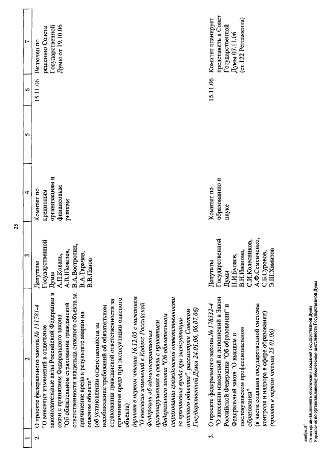 "О КАЛЕНДАРЕ РАССМОТРЕНИЯ ВОПРОСОВ ГОСУДАРСТВЕННОЙ ДУМОЙ С 1 ПО 24 НОЯБРЯ 2006 ГОДА"