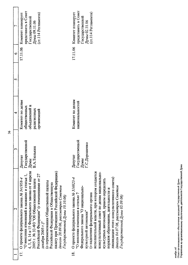 "О КАЛЕНДАРЕ РАССМОТРЕНИЯ ВОПРОСОВ ГОСУДАРСТВЕННОЙ ДУМОЙ С 1 ПО 24 НОЯБРЯ 2006 ГОДА"