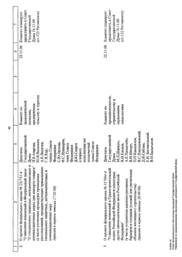 "О КАЛЕНДАРЕ РАССМОТРЕНИЯ ВОПРОСОВ ГОСУДАРСТВЕННОЙ ДУМОЙ С 1 ПО 24 НОЯБРЯ 2006 ГОДА"