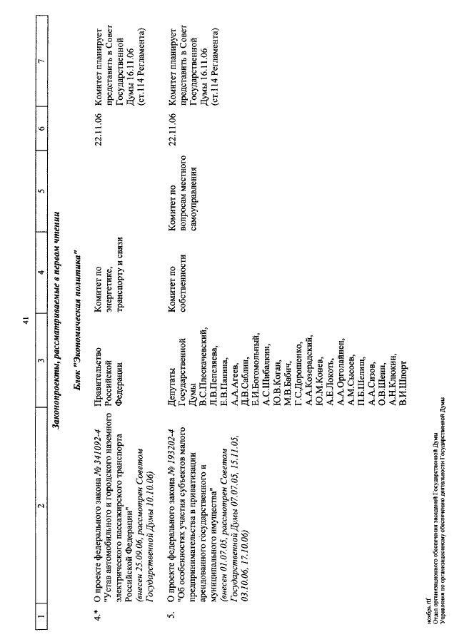 "О КАЛЕНДАРЕ РАССМОТРЕНИЯ ВОПРОСОВ ГОСУДАРСТВЕННОЙ ДУМОЙ С 1 ПО 24 НОЯБРЯ 2006 ГОДА"