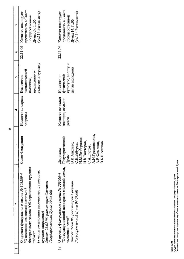 "О КАЛЕНДАРЕ РАССМОТРЕНИЯ ВОПРОСОВ ГОСУДАРСТВЕННОЙ ДУМОЙ С 1 ПО 24 НОЯБРЯ 2006 ГОДА"