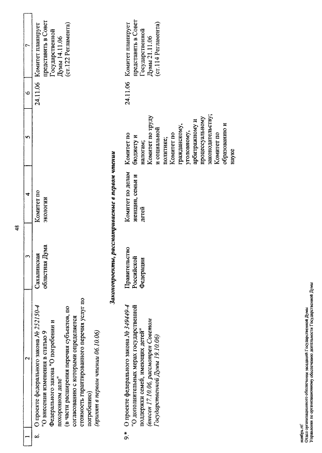 "О КАЛЕНДАРЕ РАССМОТРЕНИЯ ВОПРОСОВ ГОСУДАРСТВЕННОЙ ДУМОЙ С 1 ПО 24 НОЯБРЯ 2006 ГОДА"