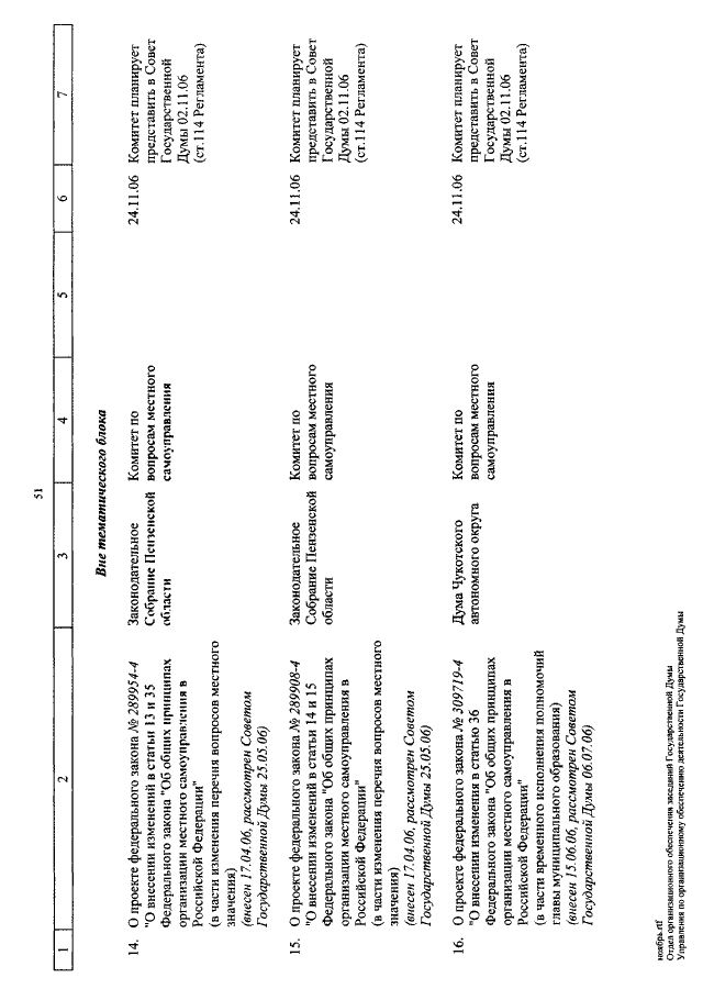 "О КАЛЕНДАРЕ РАССМОТРЕНИЯ ВОПРОСОВ ГОСУДАРСТВЕННОЙ ДУМОЙ С 1 ПО 24 НОЯБРЯ 2006 ГОДА"