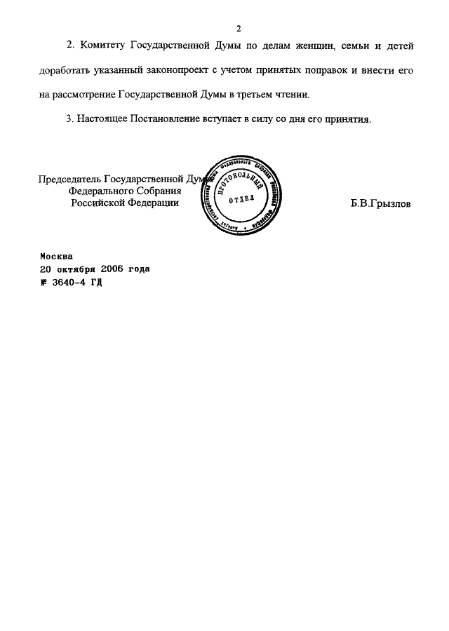 ПОСТАНОВЛЕНИЕ ГД ФС РФ от 20.10.2006 N 3640-4 ГД