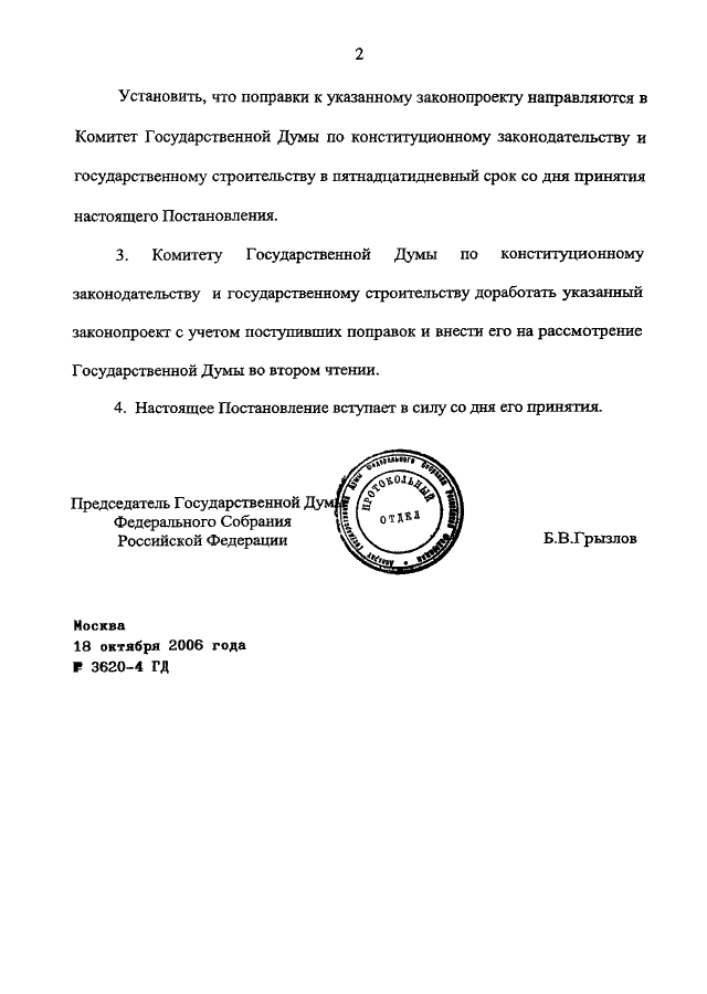 ПОСТАНОВЛЕНИЕ ГД ФС РФ от 18.10.2006 N 3620-4 ГД