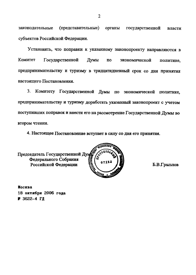 ПОСТАНОВЛЕНИЕ ГД ФС РФ от 18.10.2006 N 3622-4 ГД