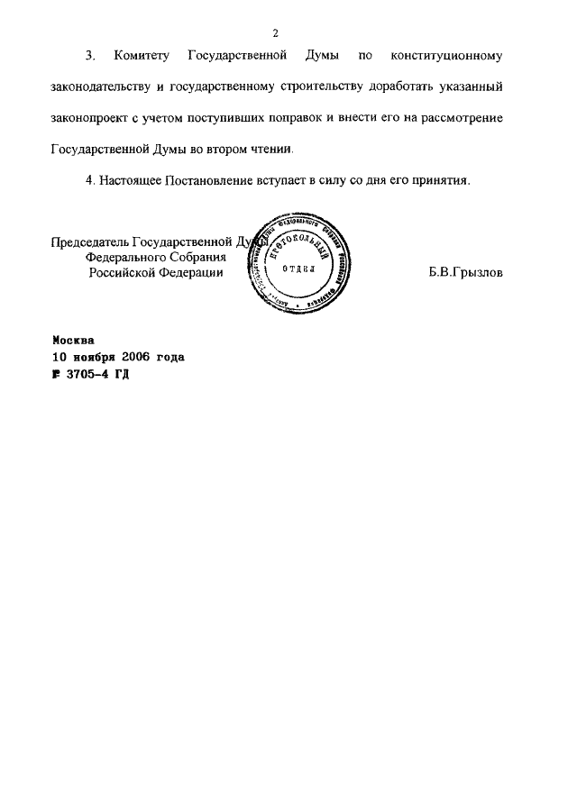 ПОСТАНОВЛЕНИЕ ГД ФС РФ от 10.11.2006 N 3705-4 ГД