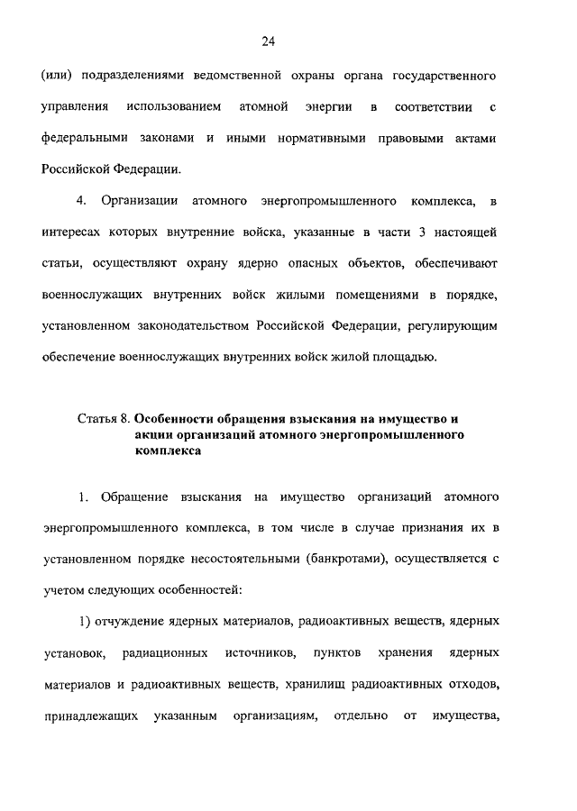 "ОБ ОСОБЕННОСТЯХ УПРАВЛЕНИЯ И РАСПОРЯЖЕНИЯ ИМУЩЕСТВОМ И АКЦИЯМИ ОРГАНИЗАЦИЙ, ОСУЩЕСТВЛЯЮЩИХ ДЕЯТЕЛЬНОСТЬ В ОБЛАСТИ ИСПОЛЬЗОВАНИЯ АТОМНОЙ ЭНЕРГИИ, И О ВНЕСЕНИИ ИЗМЕНЕНИЙ В ОТДЕЛЬНЫЕ ЗАКОНОДАТЕЛЬНЫЕ АКТЫ РОССИЙСКОЙ ФЕДЕРАЦИИ"