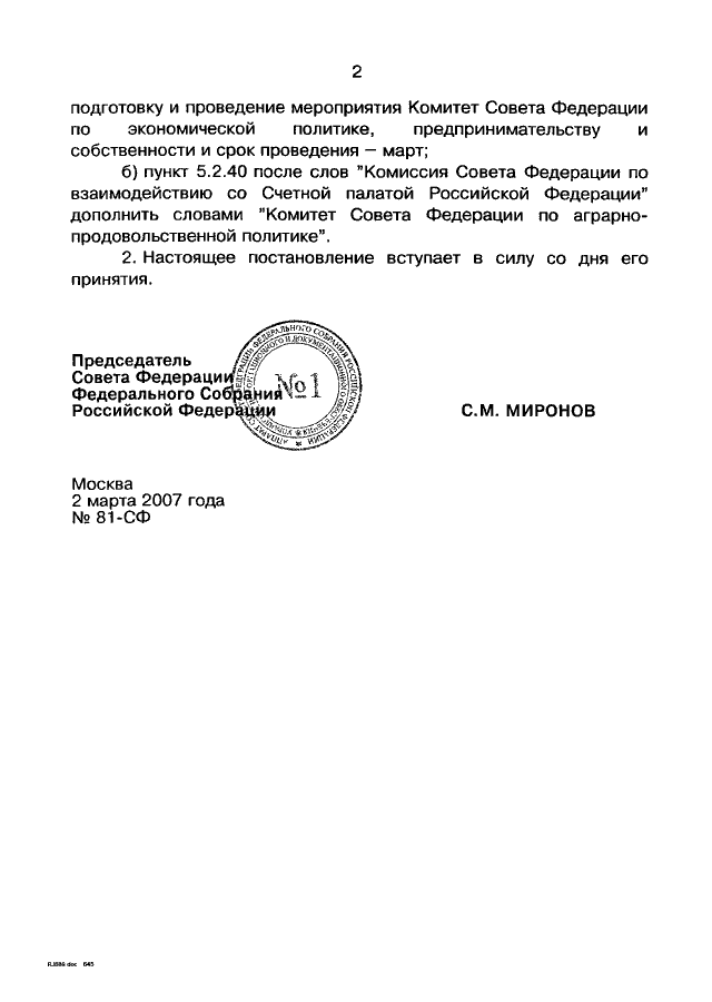 ПОСТАНОВЛЕНИЕ СФ ФС РФ от 02.03.2007 N 81-СФ