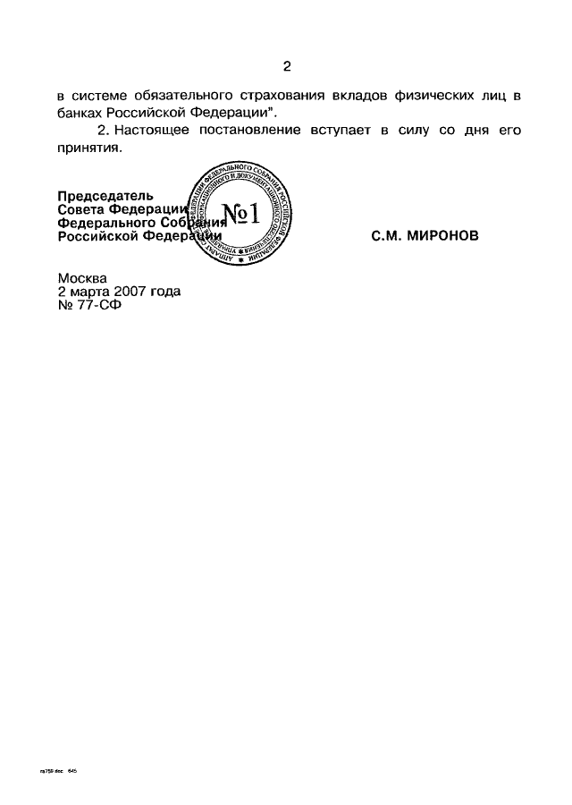 ПОСТАНОВЛЕНИЕ СФ ФС РФ от 02.03.2007 N 77-СФ