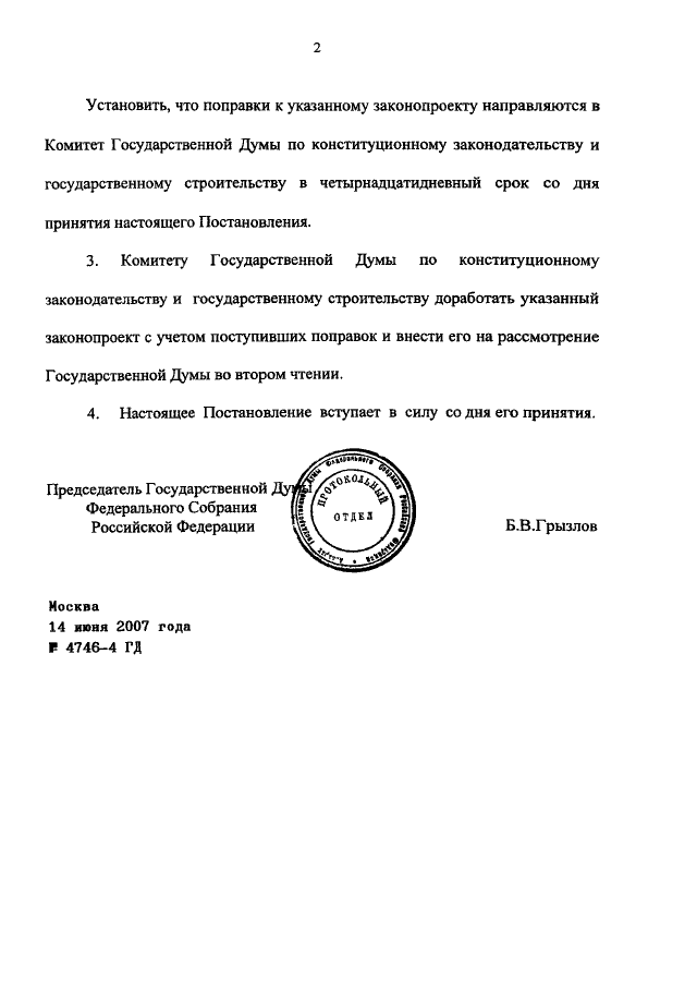 ПОСТАНОВЛЕНИЕ ГД ФС РФ от 14.06.2007 N 4746-4 ГД