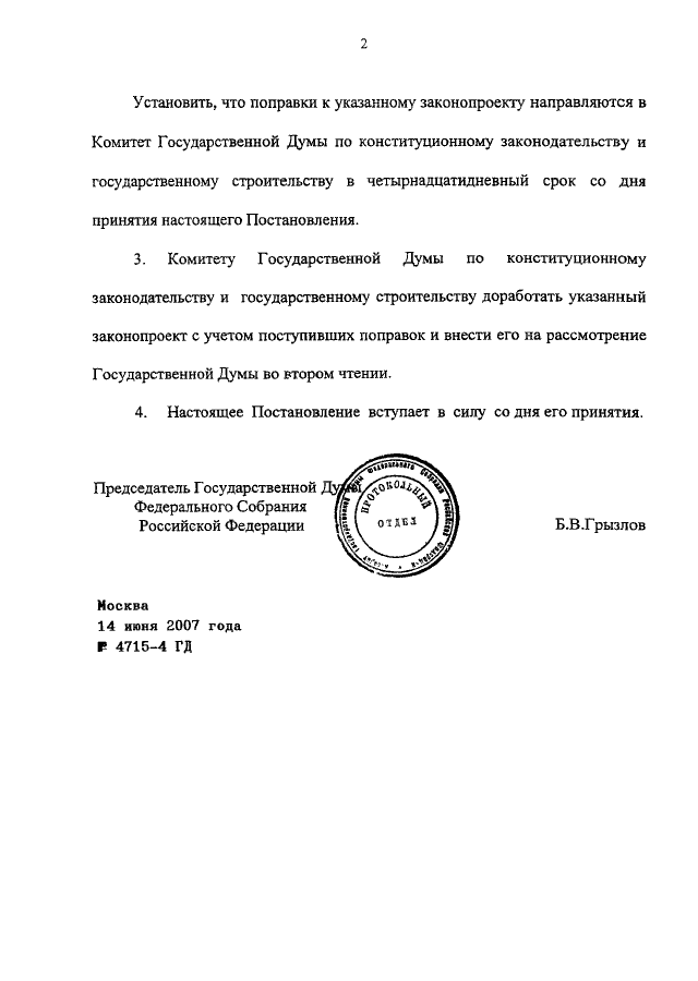 ПОСТАНОВЛЕНИЕ ГД ФС РФ от 14.06.2007 N 4715-4 ГД