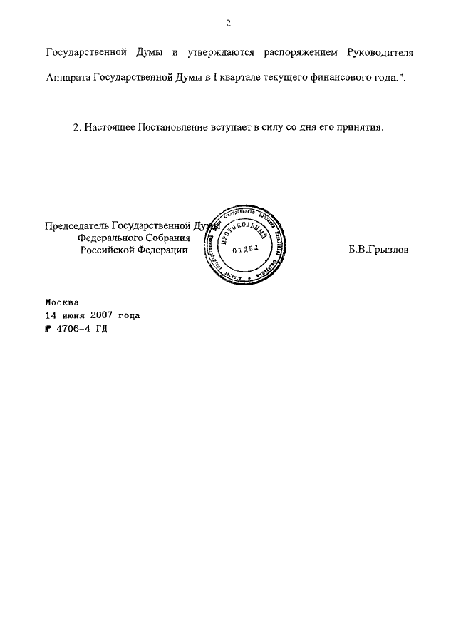 ПОСТАНОВЛЕНИЕ ГД ФС РФ от 14.06.2007 N 4706-4 ГД