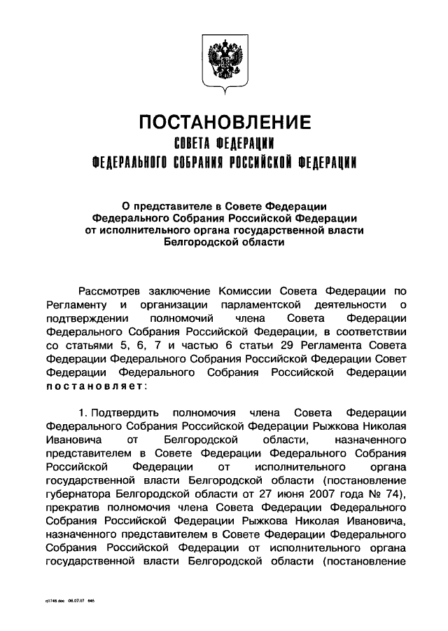 ПОСТАНОВЛЕНИЕ СФ ФС РФ от 06.07.2007 N 256-СФ