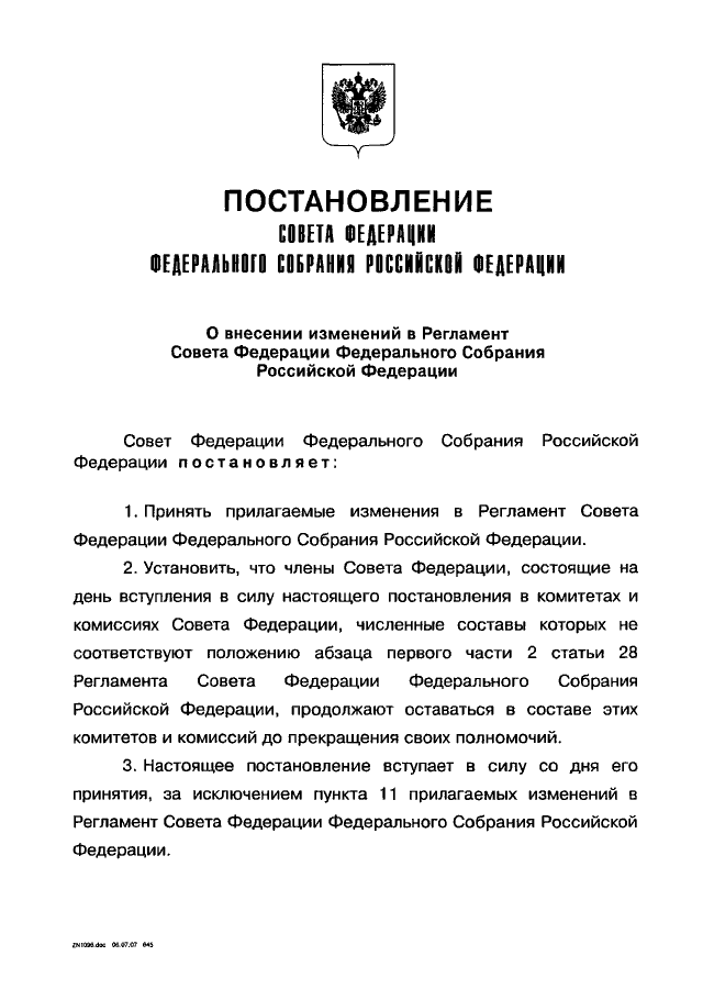 "О ВНЕСЕНИИ ИЗМЕНЕНИЙ В РЕГЛАМЕНТ СОВЕТА ФЕДЕРАЦИИ ФЕДЕРАЛЬНОГО СОБРАНИЯ РОССИЙСКОЙ ФЕДЕРАЦИИ"