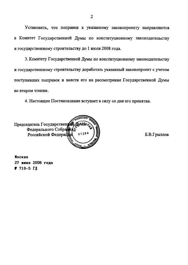 ПОСТАНОВЛЕНИЕ ГД ФС РФ от 27.06.2008 N 710-5 ГД