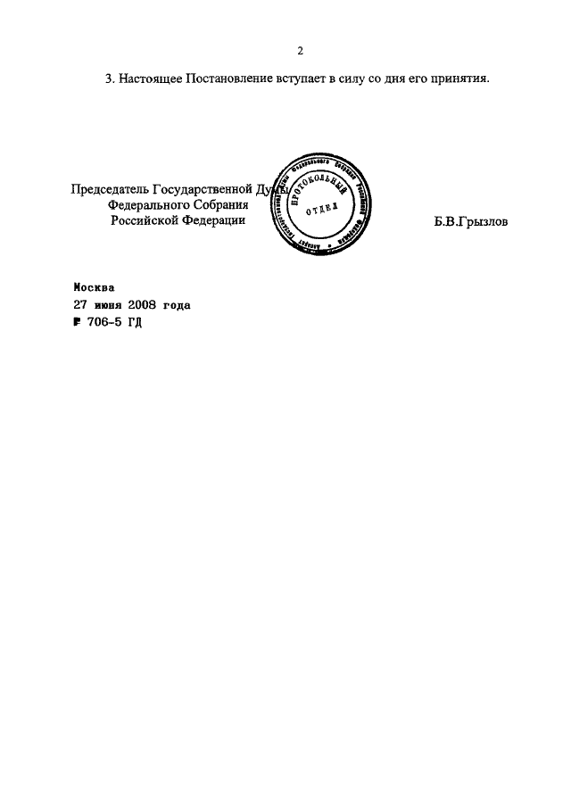ПОСТАНОВЛЕНИЕ ГД ФС РФ от 27.06.2008 N 706-5 ГД