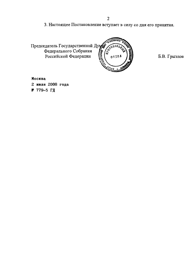 ПОСТАНОВЛЕНИЕ ГД ФС РФ от 02.07.2008 N 779-5 ГД