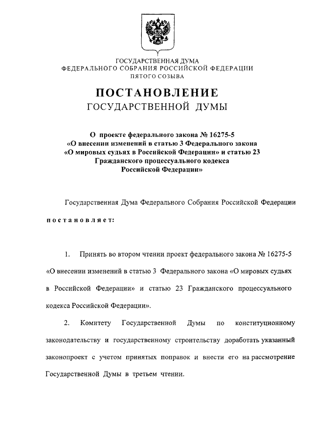 "О ПРОЕКТЕ ФЕДЕРАЛЬНОГО ЗАКОНА N 16275-5 "О ВНЕСЕНИИ ИЗМЕНЕНИЙ В