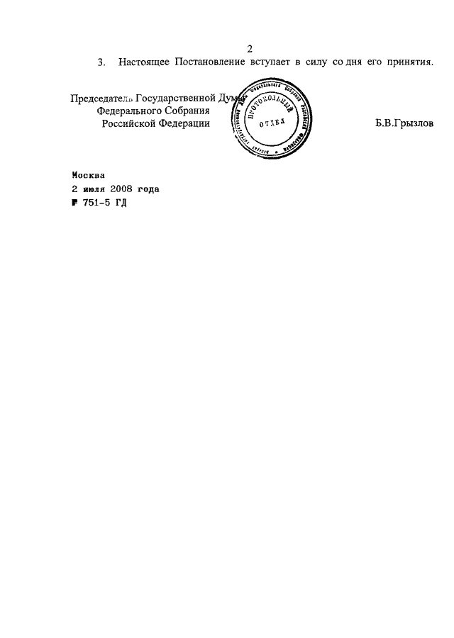 ПОСТАНОВЛЕНИЕ ГД ФС РФ от 02.07.2008 N 751-5 ГД