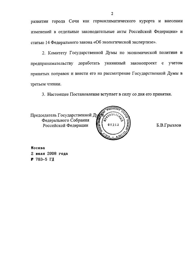 ПОСТАНОВЛЕНИЕ ГД ФС РФ от 02.07.2008 N 783-5 ГД