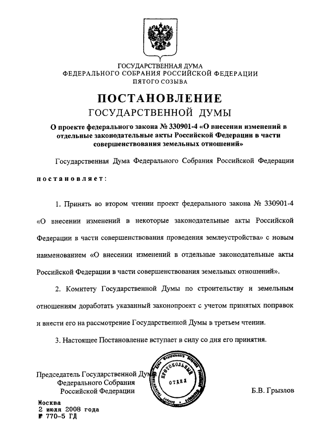 ПОСТАНОВЛЕНИЕ ГД ФС РФ от 02.07.2008 N 770-5 ГД