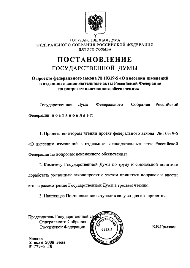 ПОСТАНОВЛЕНИЕ ГД ФС РФ от 02.07.2008 N 773-5 ГД