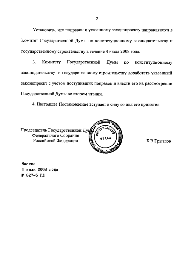 ПОСТАНОВЛЕНИЕ ГД ФС РФ от 04.07.2008 N 827-5 ГД
