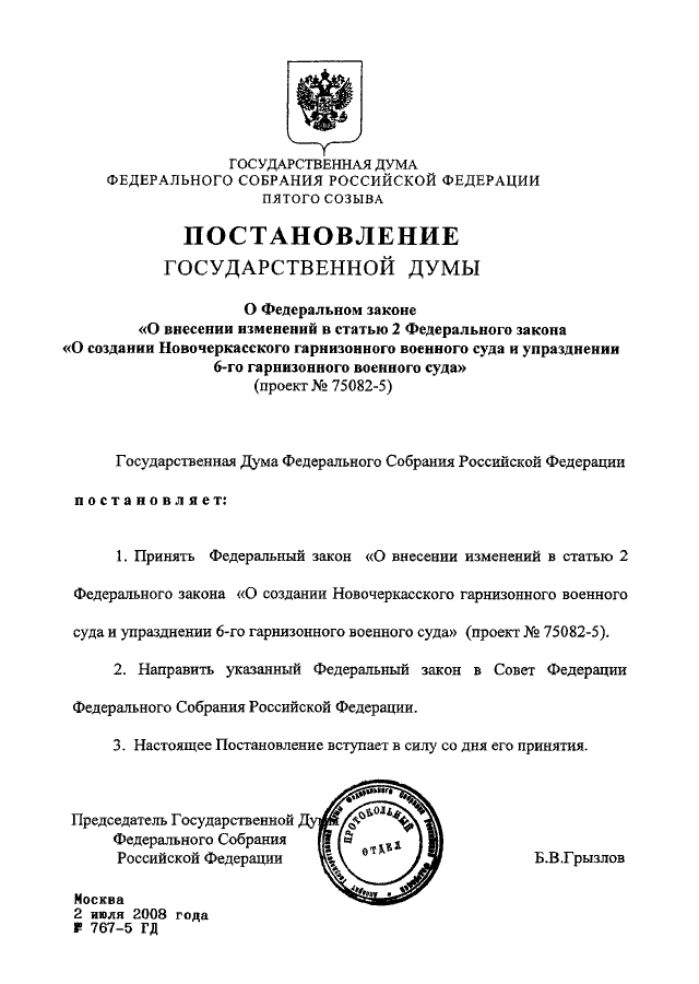 ПОСТАНОВЛЕНИЕ ГД ФС РФ от 02.07.2008 N 767-5 ГД