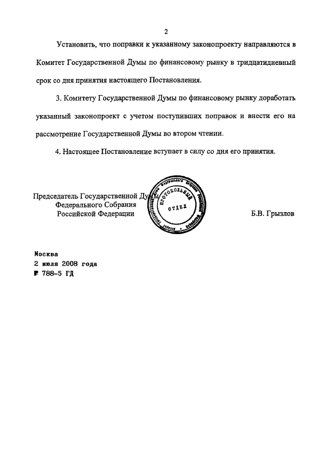 ПОСТАНОВЛЕНИЕ ГД ФС РФ от 02.07.2008 N 788-5 ГД