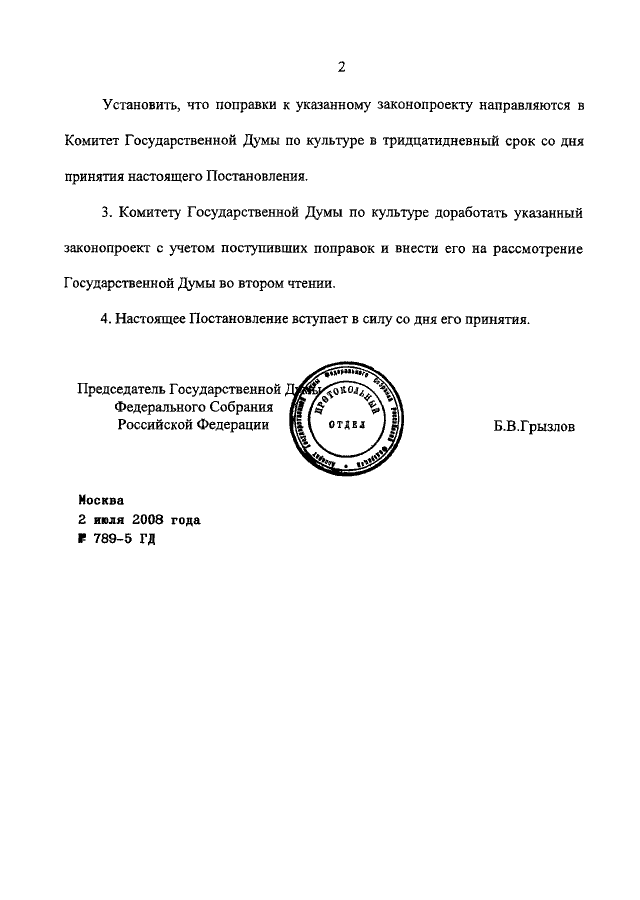 ПОСТАНОВЛЕНИЕ ГД ФС РФ от 02.07.2008 N 789-5 ГД