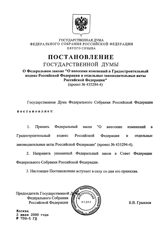 ПОСТАНОВЛЕНИЕ ГД ФС РФ от 02.07.2008 N 759-5 ГД