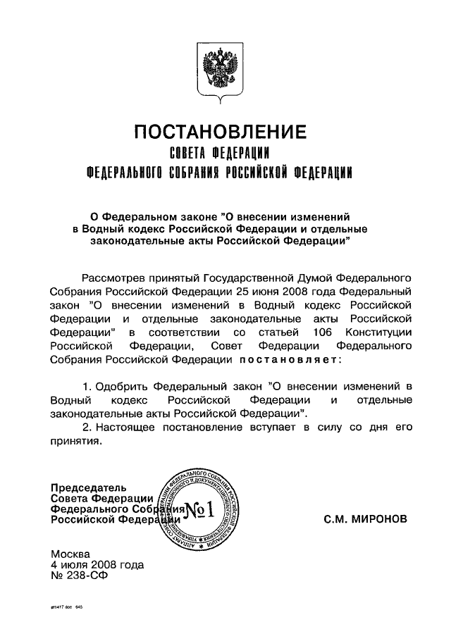 ПОСТАНОВЛЕНИЕ СФ ФС РФ от 04.07.2008 N 238-СФ
