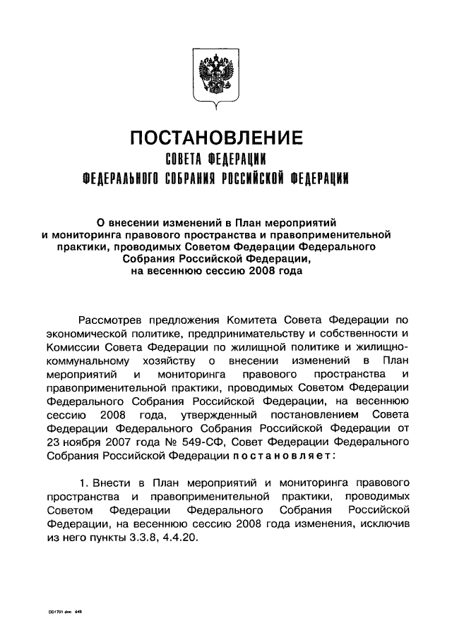 "О ВНЕСЕНИИ ИЗМЕНЕНИЙ В ПЛАН МЕРОПРИЯТИЙ И МОНИТОРИНГА ПРАВОВОГО