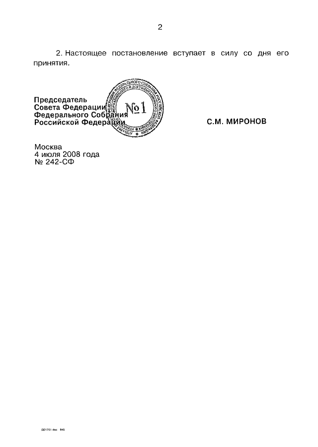 ПОСТАНОВЛЕНИЕ СФ ФС РФ от 04.07.2008 N 242-СФ