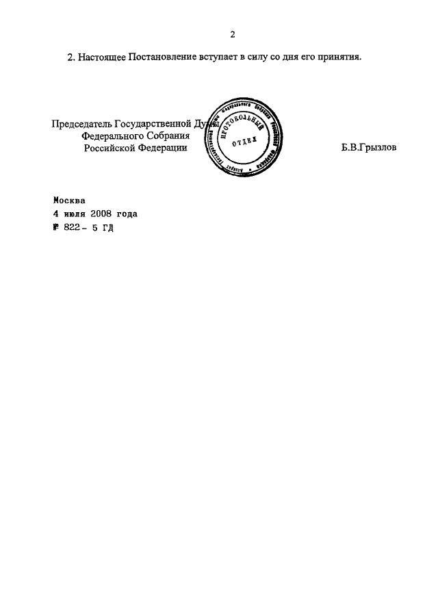 ПОСТАНОВЛЕНИЕ ГД ФС РФ от 04.07.2008 N 822-5 ГД