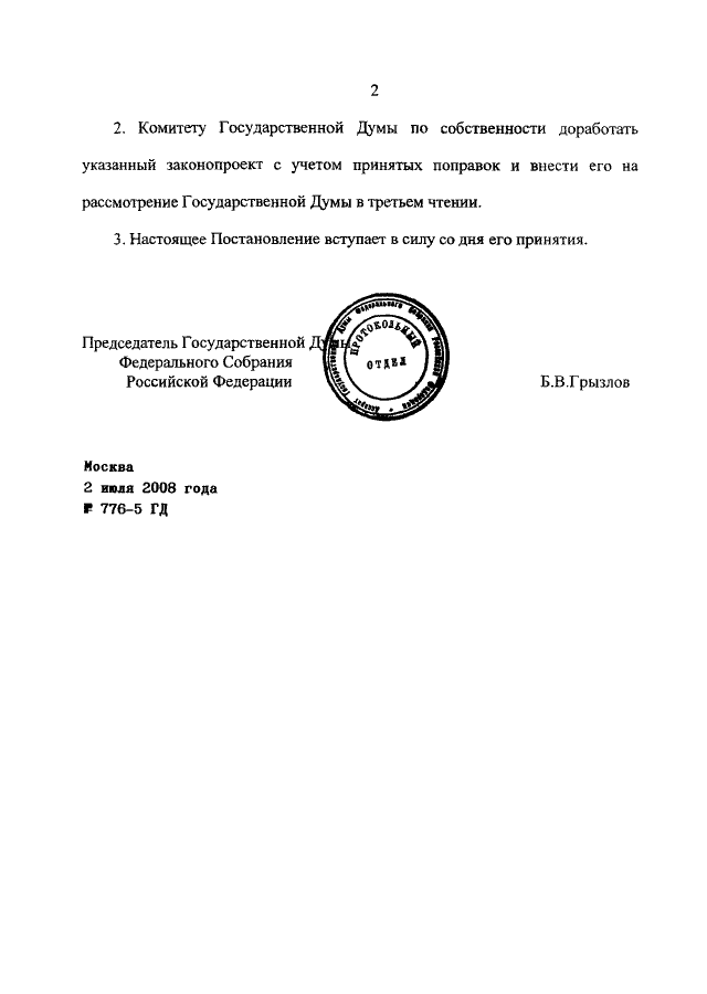 ПОСТАНОВЛЕНИЕ ГД ФС РФ от 02.07.2008 N 776-5 ГД