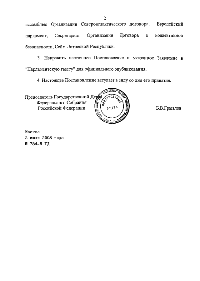 ПОСТАНОВЛЕНИЕ ГД ФС РФ от 02.07.2008 N 784-5 ГД