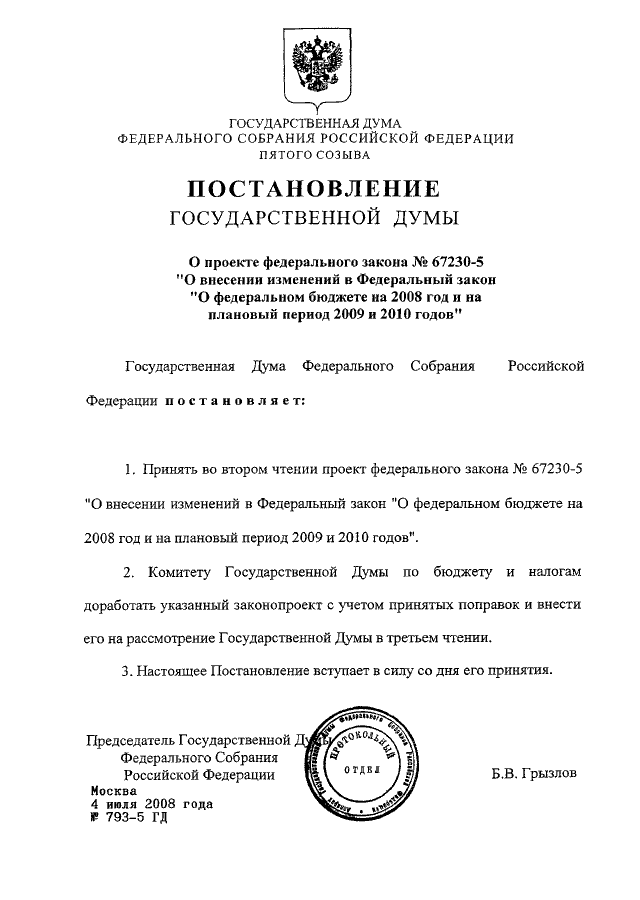 ПОСТАНОВЛЕНИЕ ГД ФС РФ от 04.07.2008 N 793-5 ГД