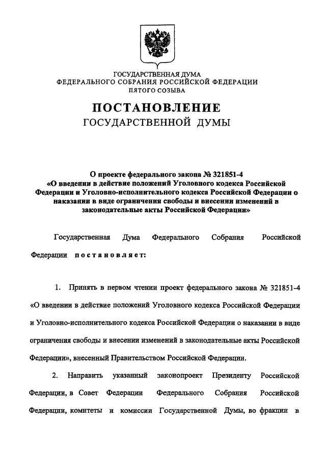 "О ПРОЕКТЕ ФЕДЕРАЛЬНОГО ЗАКОНА N 321851-4 "О ВВЕДЕНИИ В ДЕЙСТВИЕ