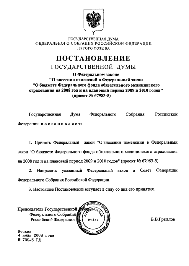 ПОСТАНОВЛЕНИЕ ГД ФС РФ от 04.07.2008 N 799-5 ГД