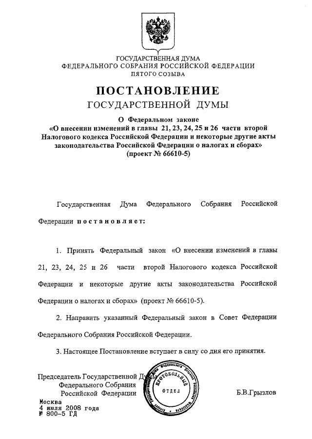 ПОСТАНОВЛЕНИЕ ГД ФС РФ от 04.07.2008 N 800-5 ГД