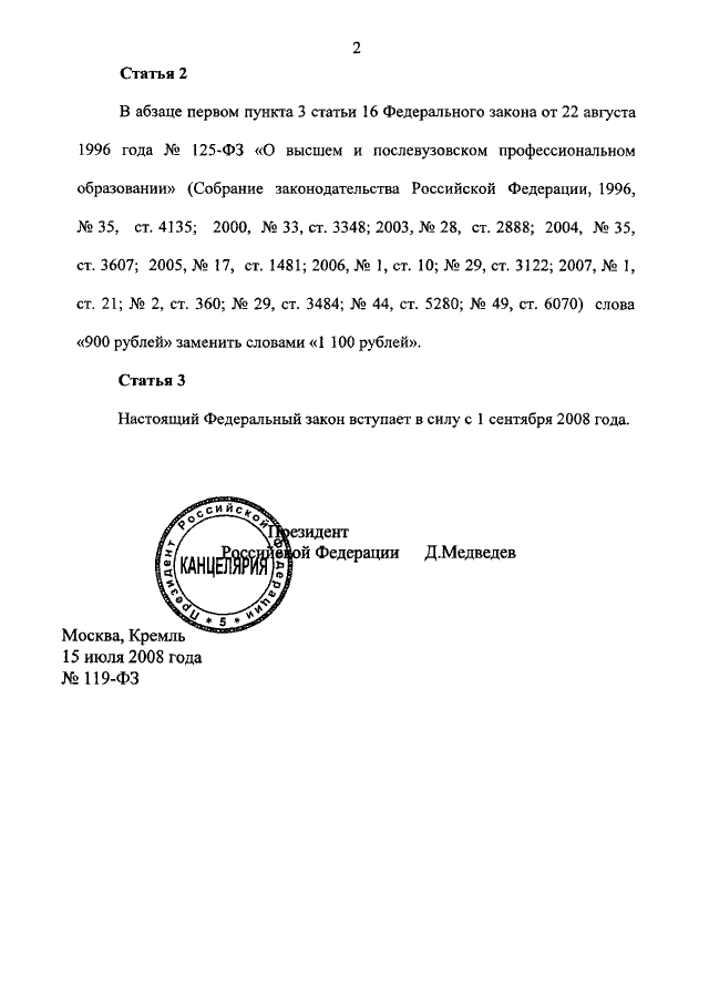 ФЕДЕРАЛЬНЫЙ ЗАКОН от 15.07.2008 N 119-ФЗ